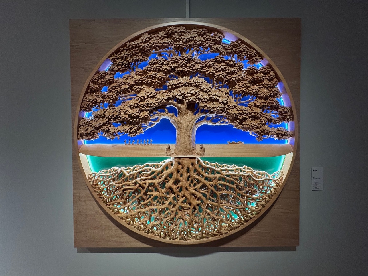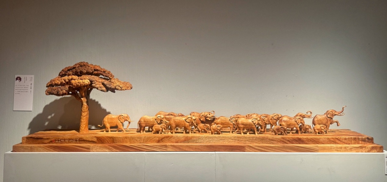 木雕凝香,刀刻春秋见匠心!同为专家委员会委员的黄小明,此次带来《生万物》等精品,以刀为笔、以木为纸,把东阳木雕的精雕细琢与艺术张力展现得一览无余。