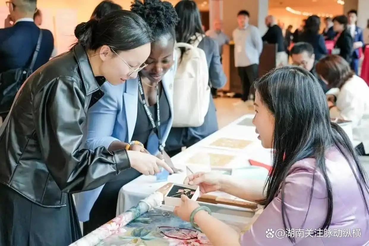 《中国妇女发展基金会理事长陈晓霞,中国妇女发展基金会副秘书长南静,中国驻纽约总领馆副总领事孙丽萍, 联合国人口基金总部项目副执行主任,联合国教科文组织纽约办事处高级联络官等对江再红展示的中国非遗湘绣技艺大加赞赏,对江再红在展示中所生动显现出的中国元素示和中国女性的智慧与才华拍手叫好,表示希望共同为促进文化多样性与可持续发展注入新的动力。