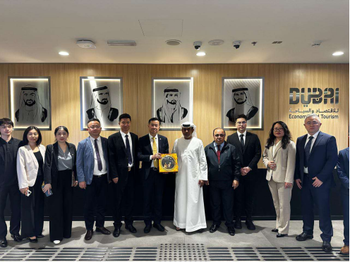 迪拜经济与旅游部资深顾问Nasser AI Suwaidi先生向陈会长一行到访表示感谢。他系统介绍迪拜产业发展布局与合作机遇,为两地企业精准对接搭建桥梁。他特别提及,迪拜经济与旅游部已建立一站式服务体系,通过统一商业许可、税收优惠、跨区域经营便利化等举措,为中企提供全周期支持,目前超8000家中企已受益于相关政策。