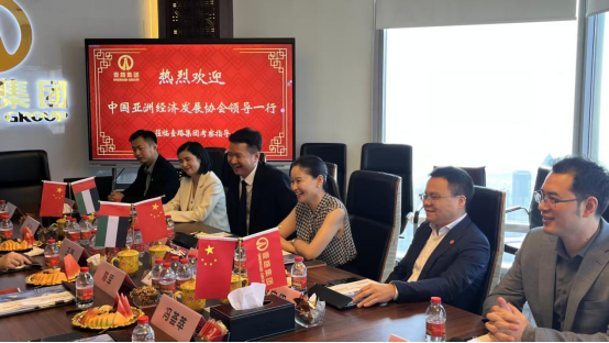 壹路集团总裁章晨灵、壹路集团(柬埔寨)有限公司总裁焦晋峰代表集团感谢亚经协信任,亚洲贸易馆正式落地迪拜壹路集团总部。他们向陈会长一行表示热烈欢迎,分别从石油及油品、车辆、安保、农产品等板块介绍集团主要业务情况,并表示在亚经协指导下,壹路集团充分发挥在迪拜耕耘扎根十几年的经验,紧紧围绕亚洲贸易馆以产品、产业,技术和项目“引进来”“走出去”的核心内容,服务好会员企业。