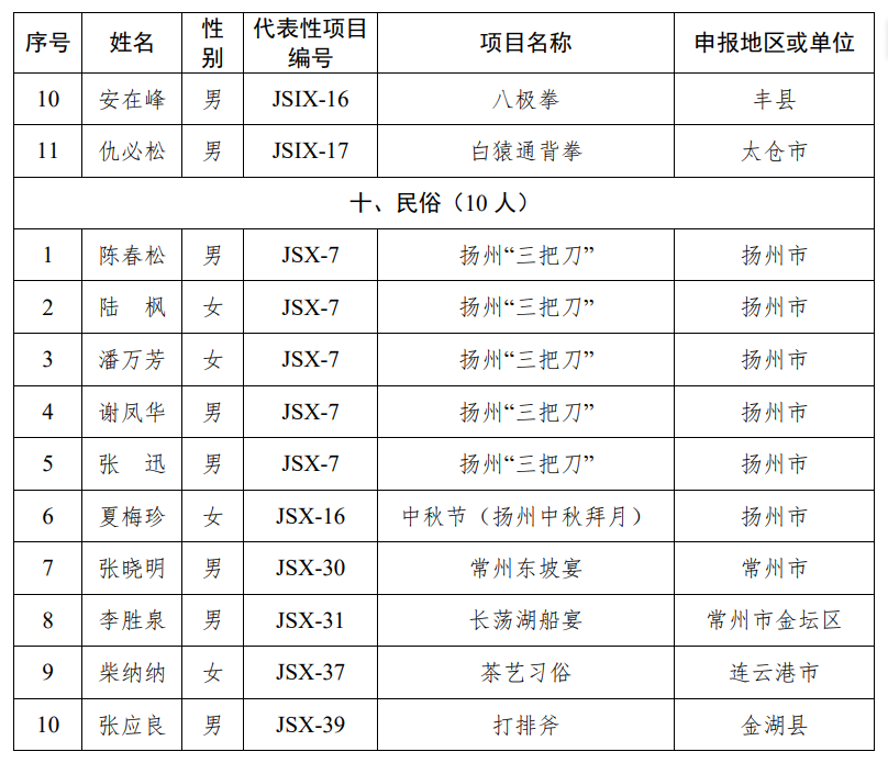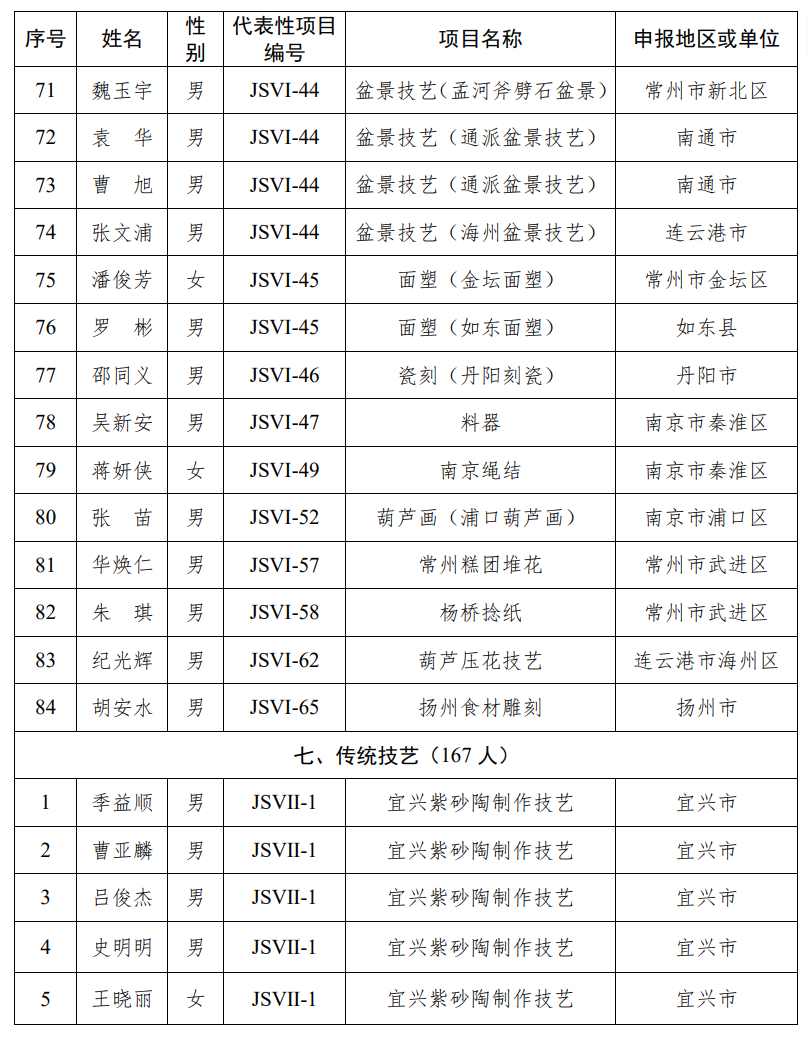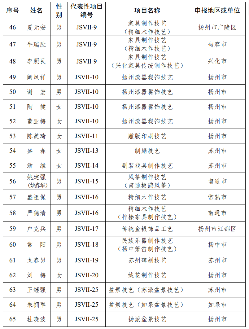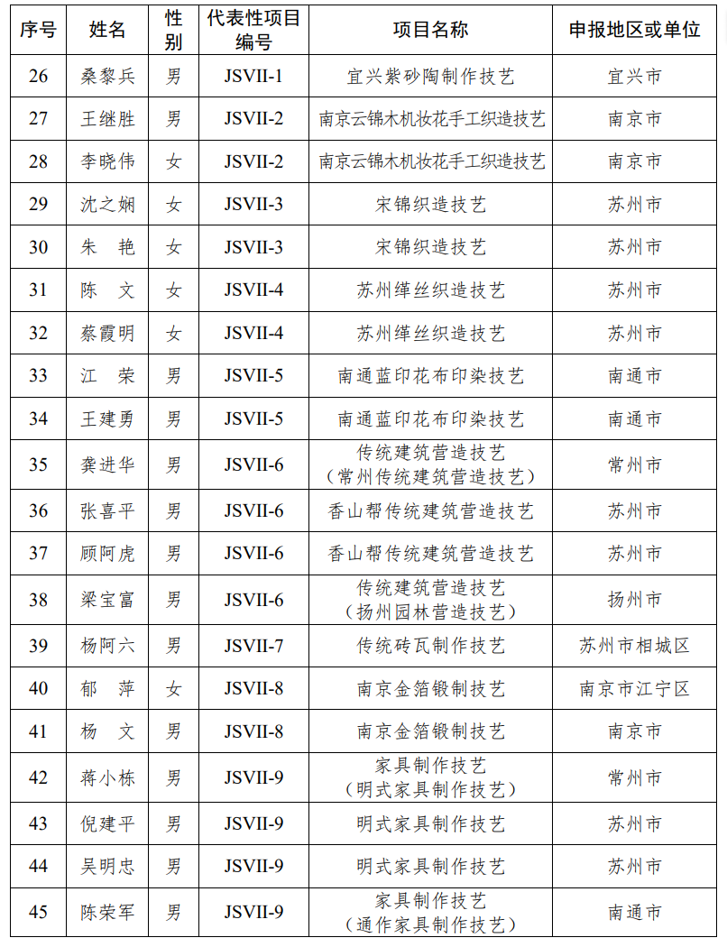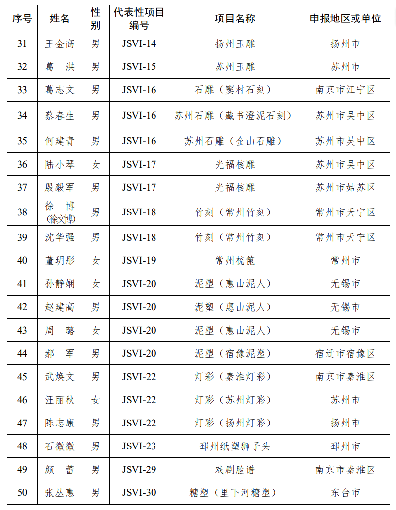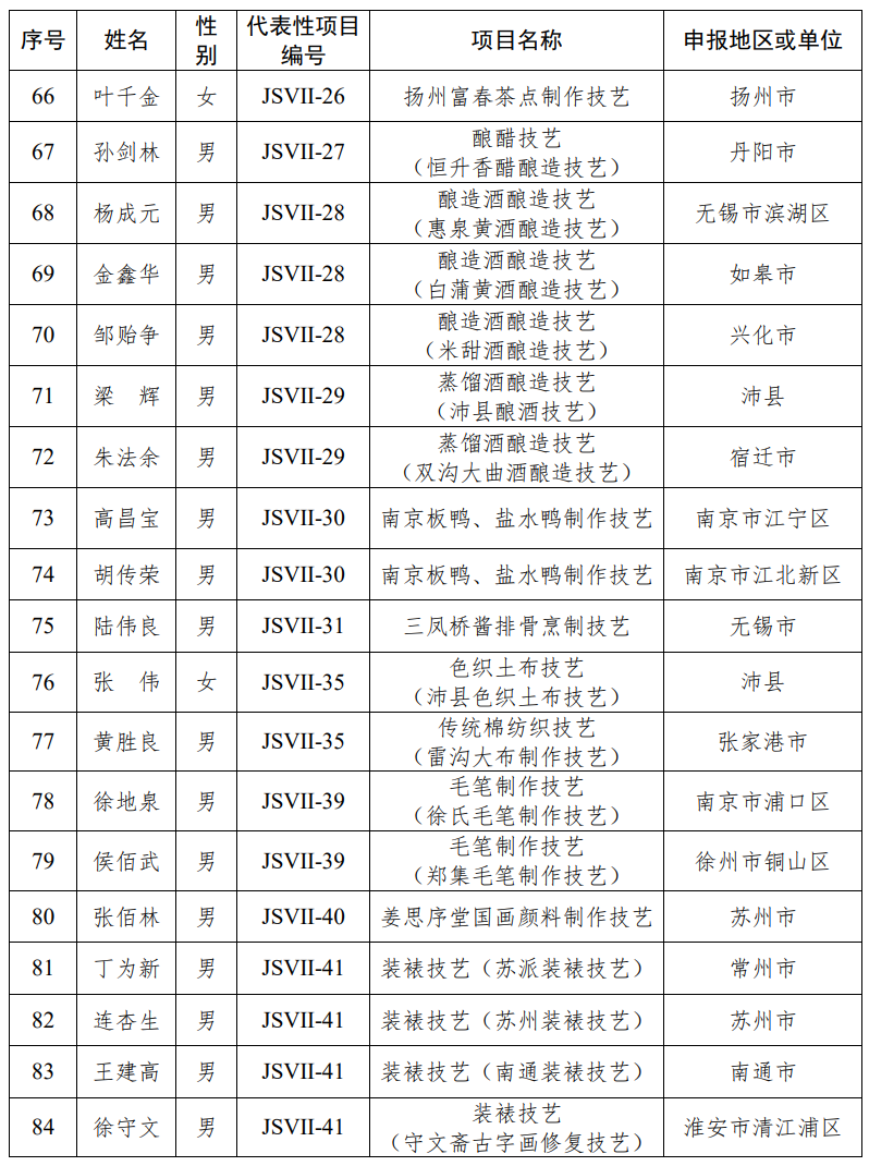 第六批江苏省非物质文化遗产代表性传承人名单公布