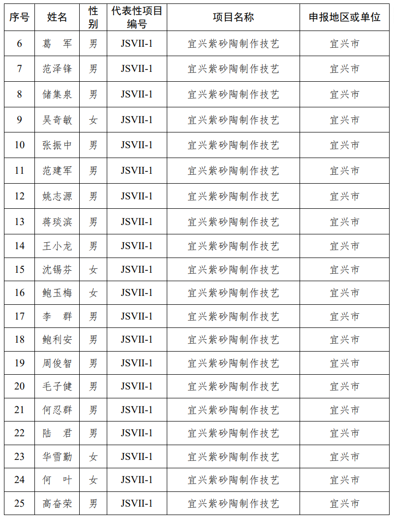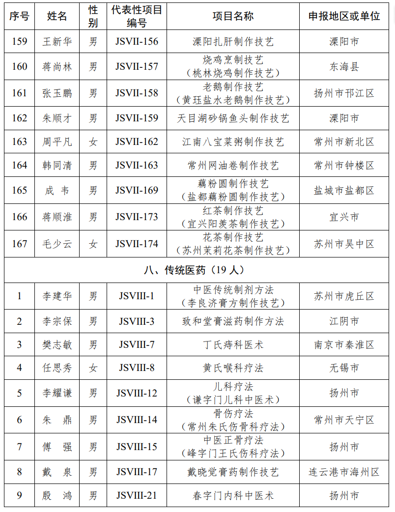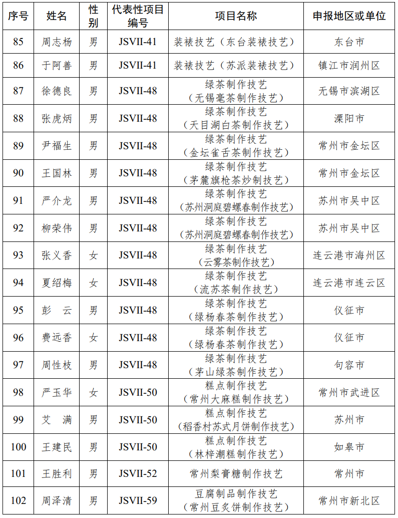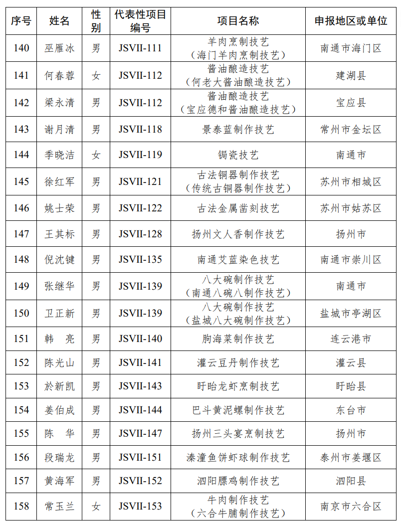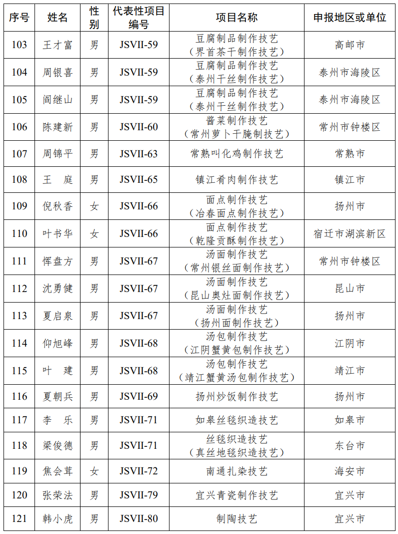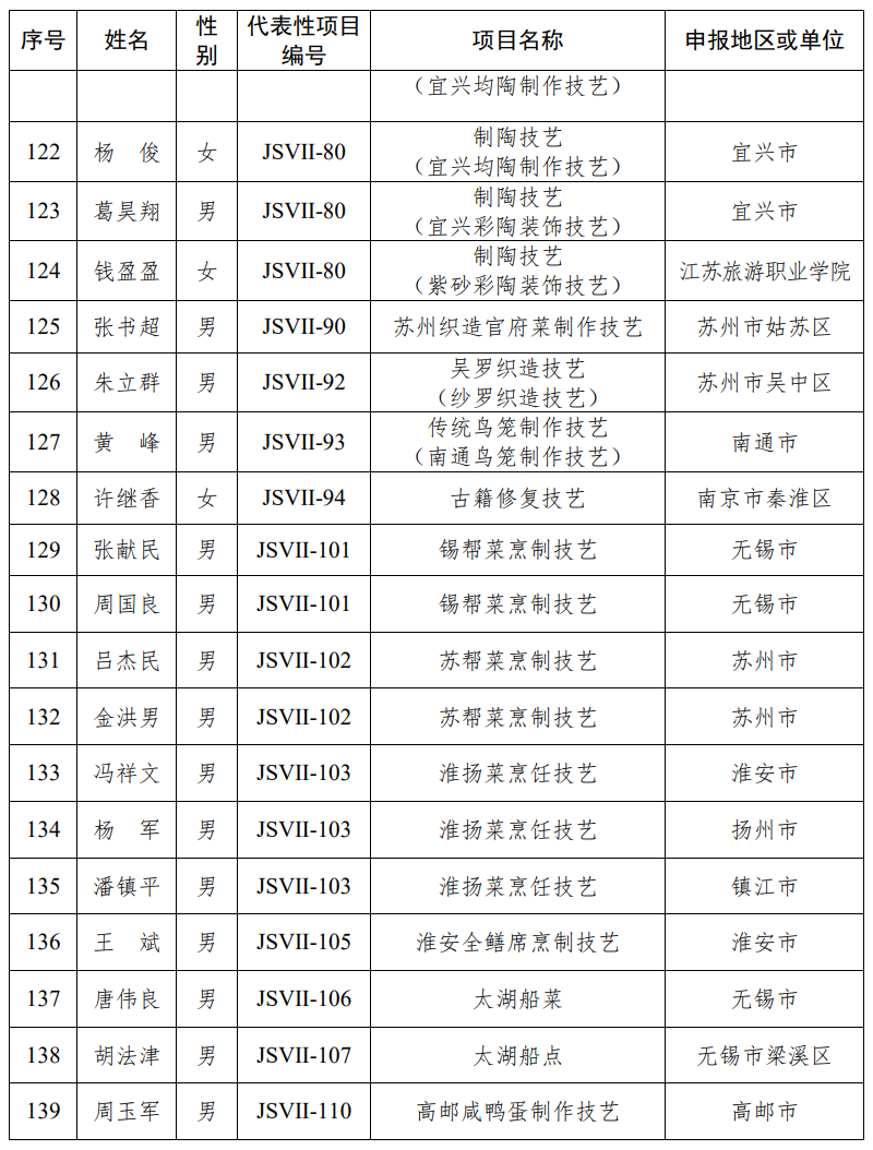 第六批江苏省非物质文化遗产代表性传承人名单公布